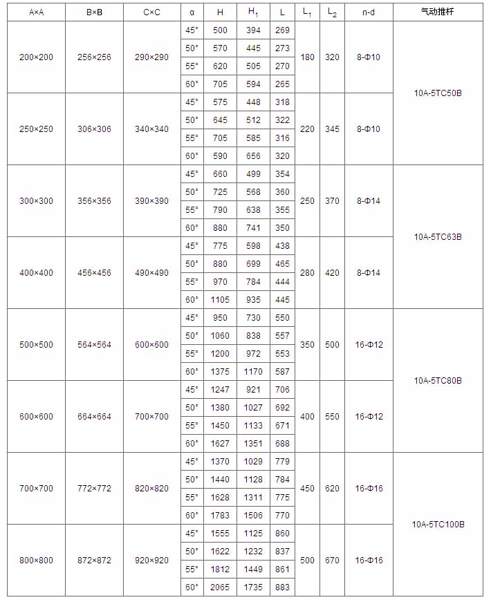 | 700×700 | 772×772 | 820×820 | 45° | 617 | 380 | 450 | 630 | 16-Ф16 | DTⅡA500-M | 0.75 |